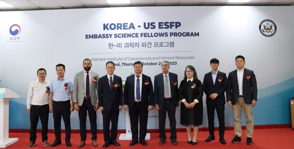 (TN&MT) – Sáng 26/10, tại Hà Nội, Viện Khoa học Địa chất và Khoáng sản (Bộ TN&MT) phối hợp với Đại sứ quán Hoa Kỳ, Đại sứ quán Hàn Quốc tổ chức Lễ Triển khai Chương trình Nghiên cứu Khoa học của Đại sứ quán Hàn Quốc – Đại sứ quán Hoa Kỳ tại Hà Nội (Korea – US ESFP).