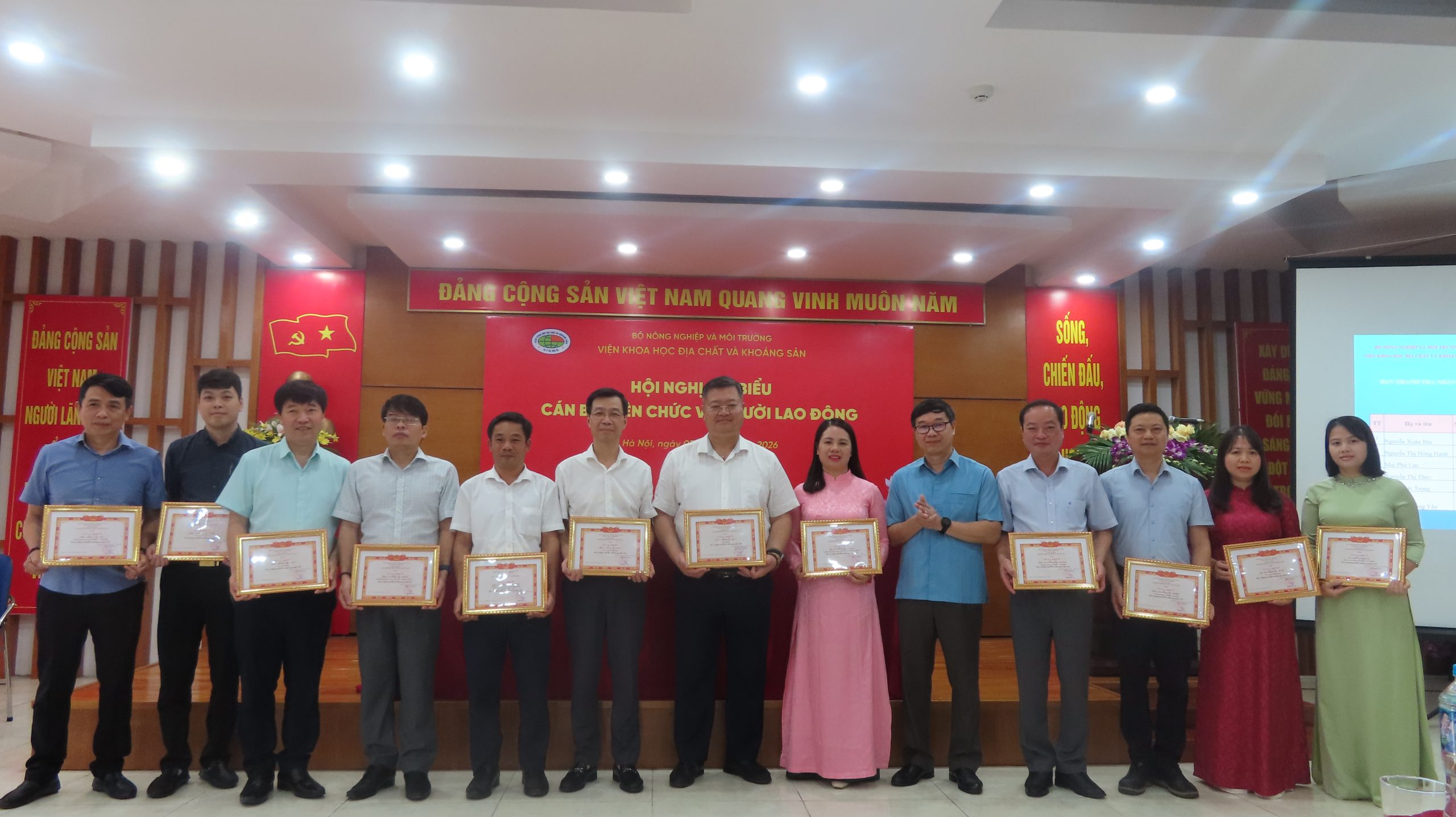 Sáng ngày 03/04/2026, tại Hội trường tầng 9 trụ sở Viện Khoa học Địa chất và Khoáng sản đã diễn ra Hội nghị Đại biểu cán bộ, viên chức và người lao động năm 2026. Hội nghị là diễn đàn quan trọng nhằm đánh giá kết quả thực hiện Nghị quyết Hội nghị năm 2025, đồng thời đề ra phương hướng, nhiệm vụ và các chỉ tiêu trọng tâm cho năm 2026.
